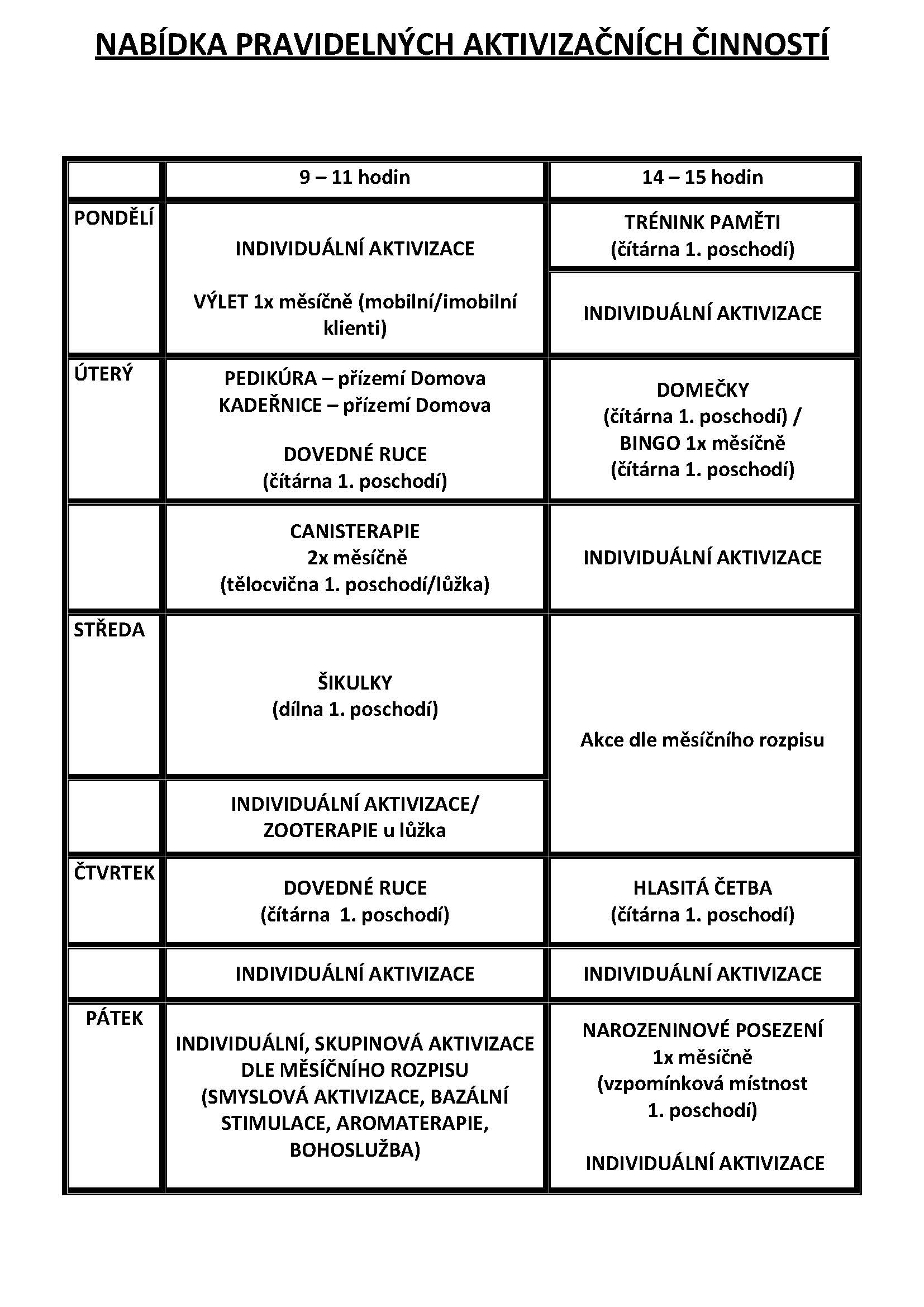 Níže naleznete nabízené týdenní akce.