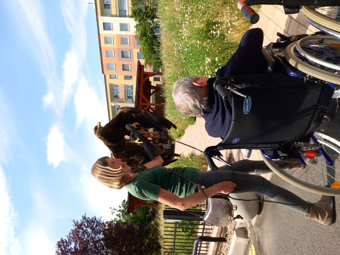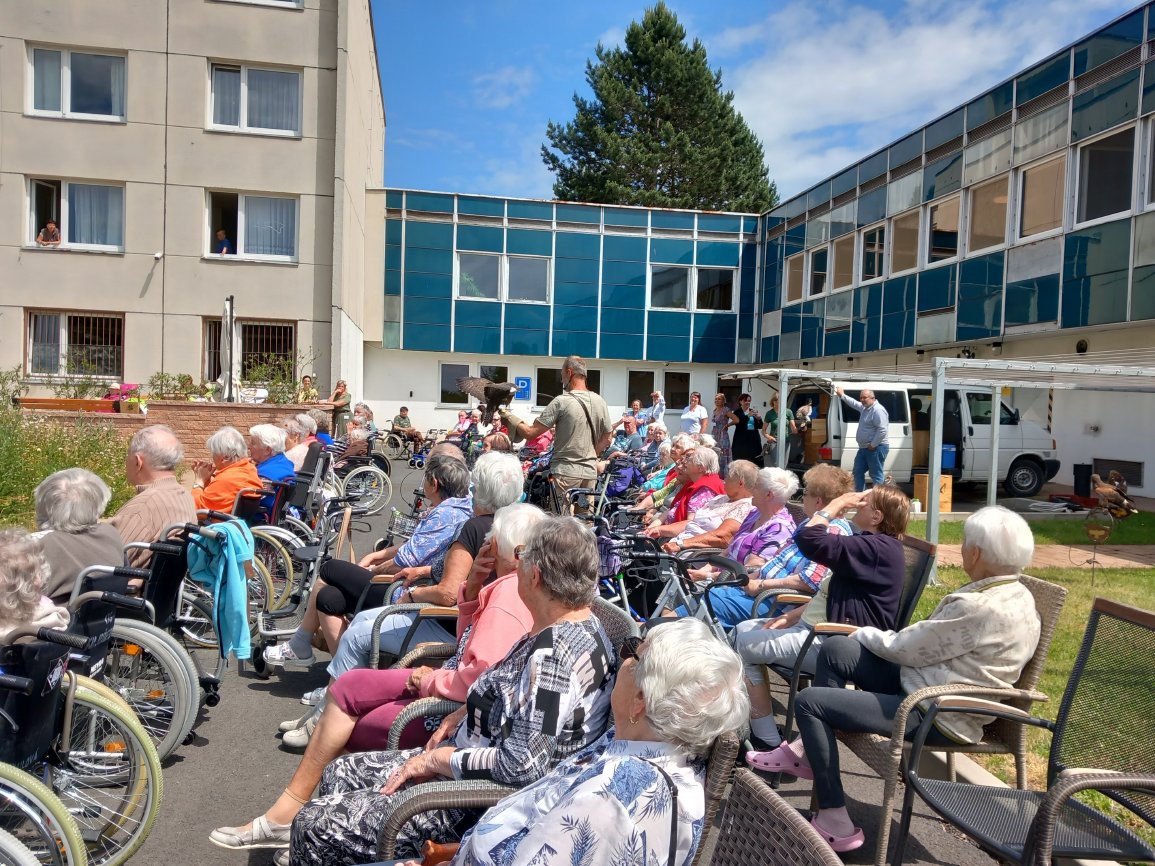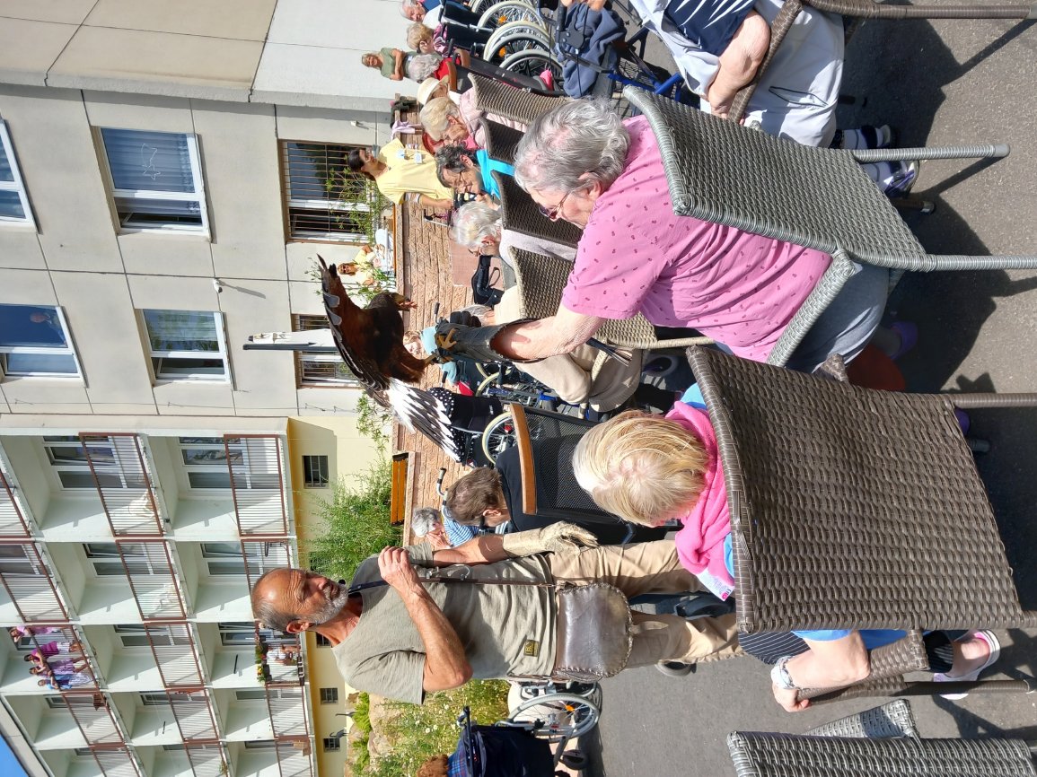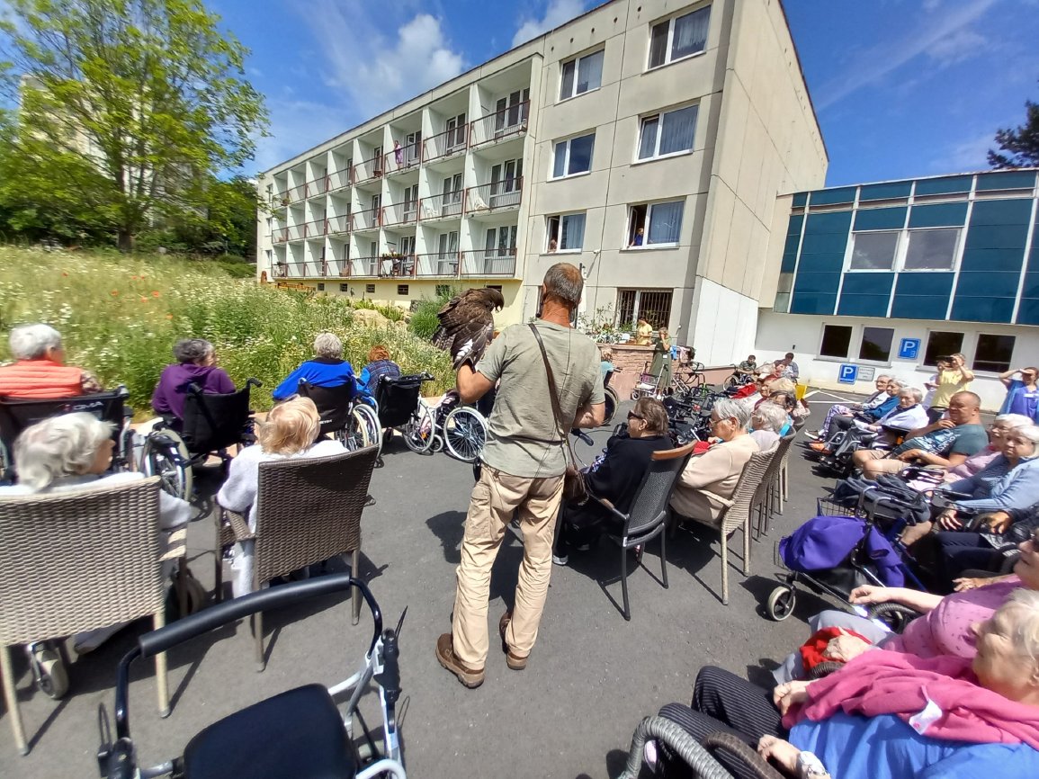 Ve čtvrtek 15.6.2023 byla klientům předvedena ukázka dravců s komentovanou přednáškou.