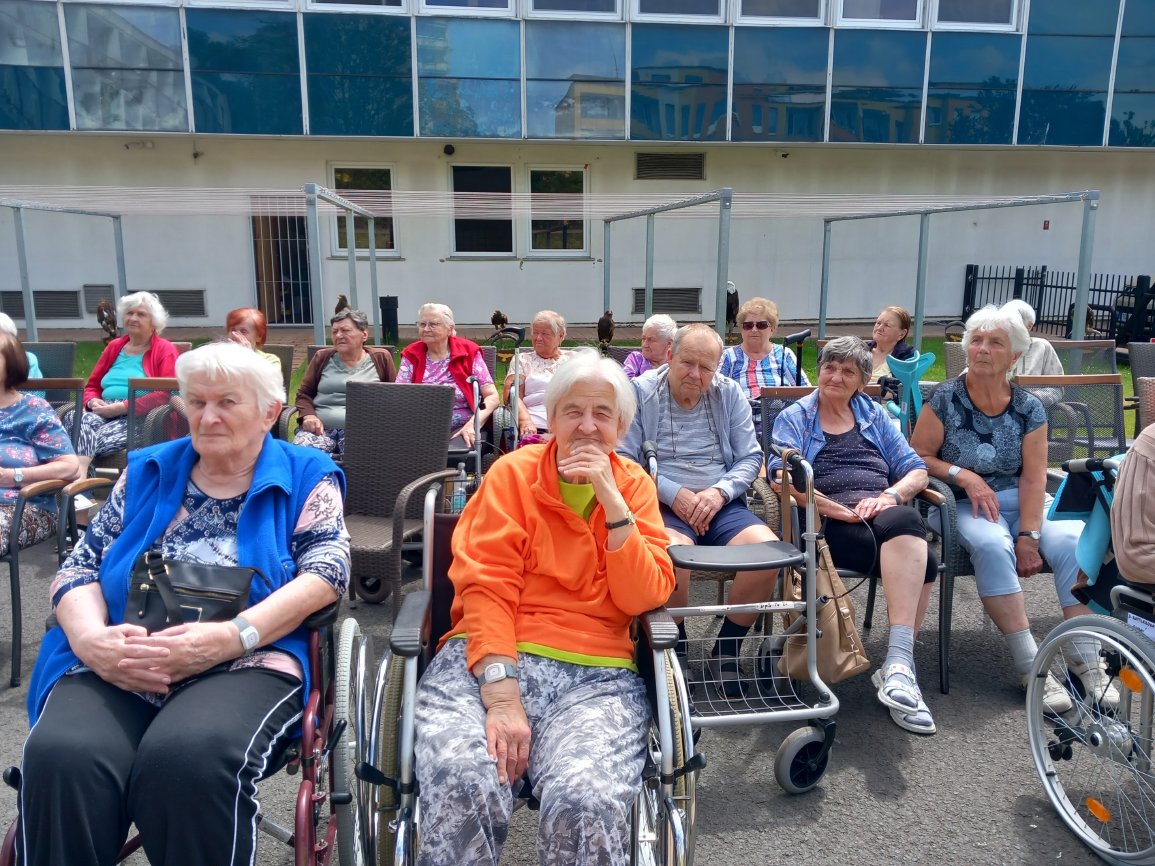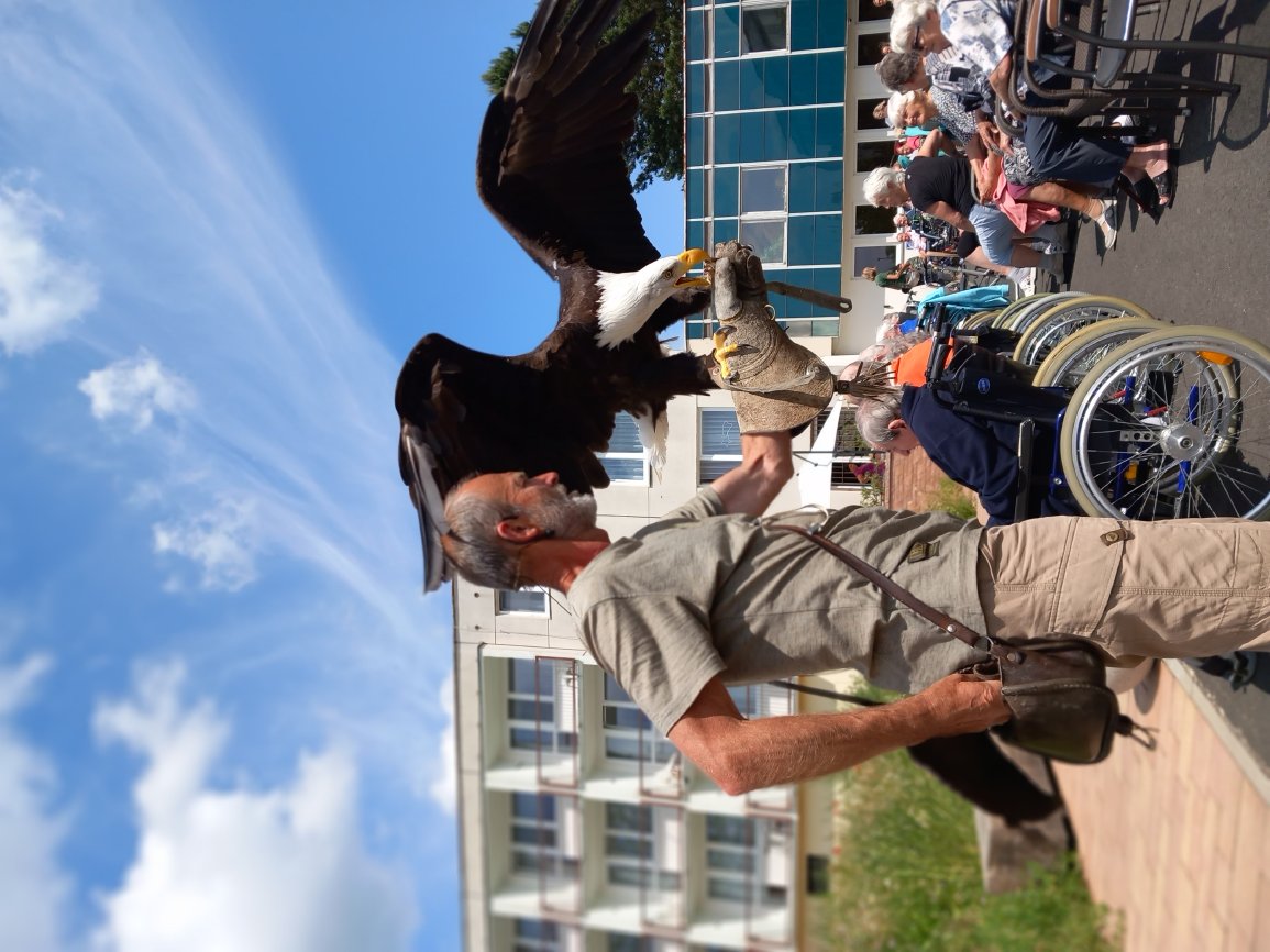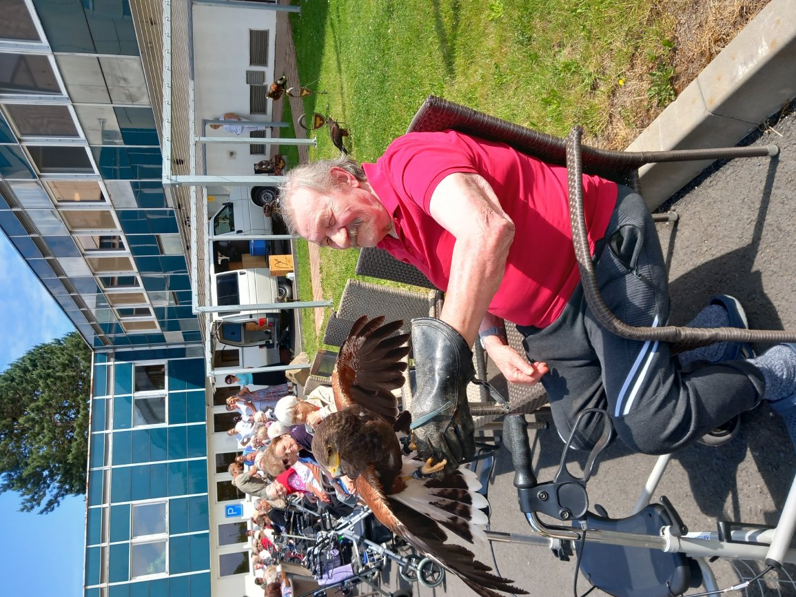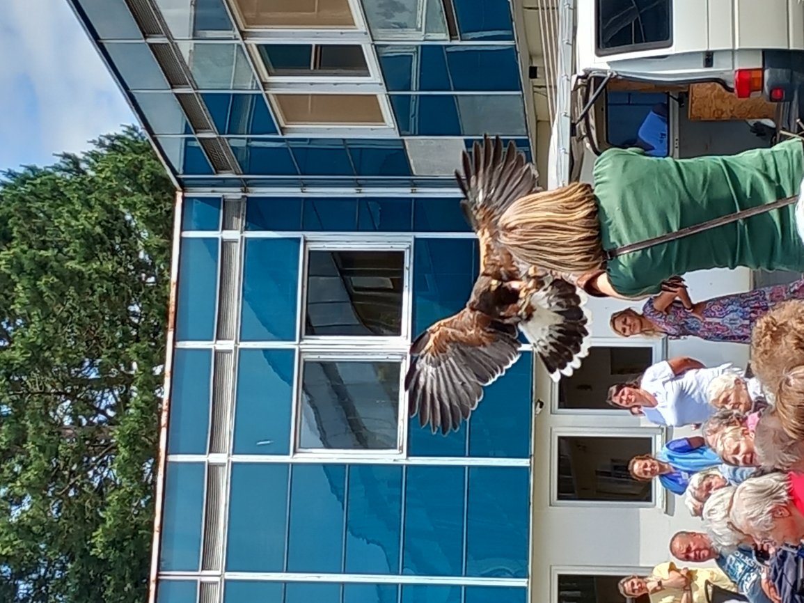 Ve čtvrtek 15.6.2023 byla klientům předvedena ukázka dravců s komentovanou přednáškou.