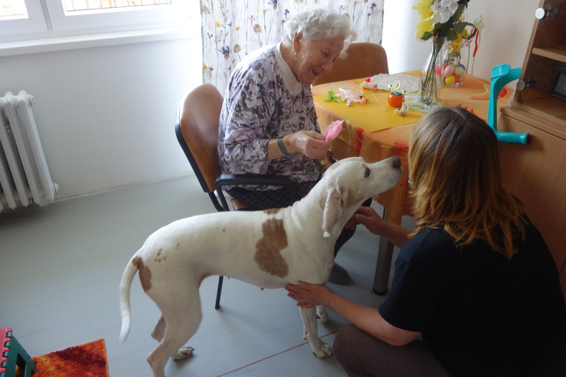 V úterý 12.4.2022 probíhala individuální canisterapie s Whiskey.