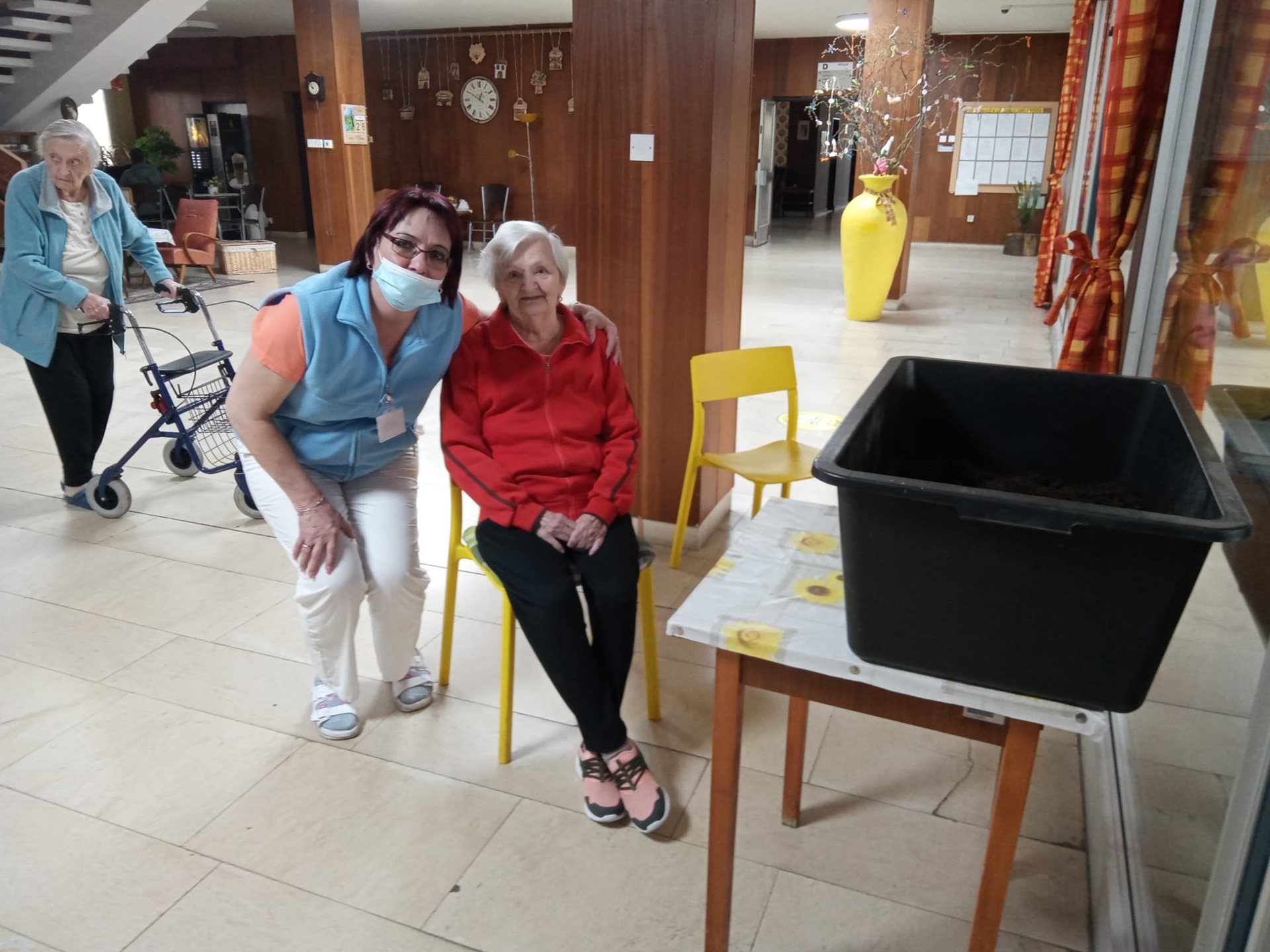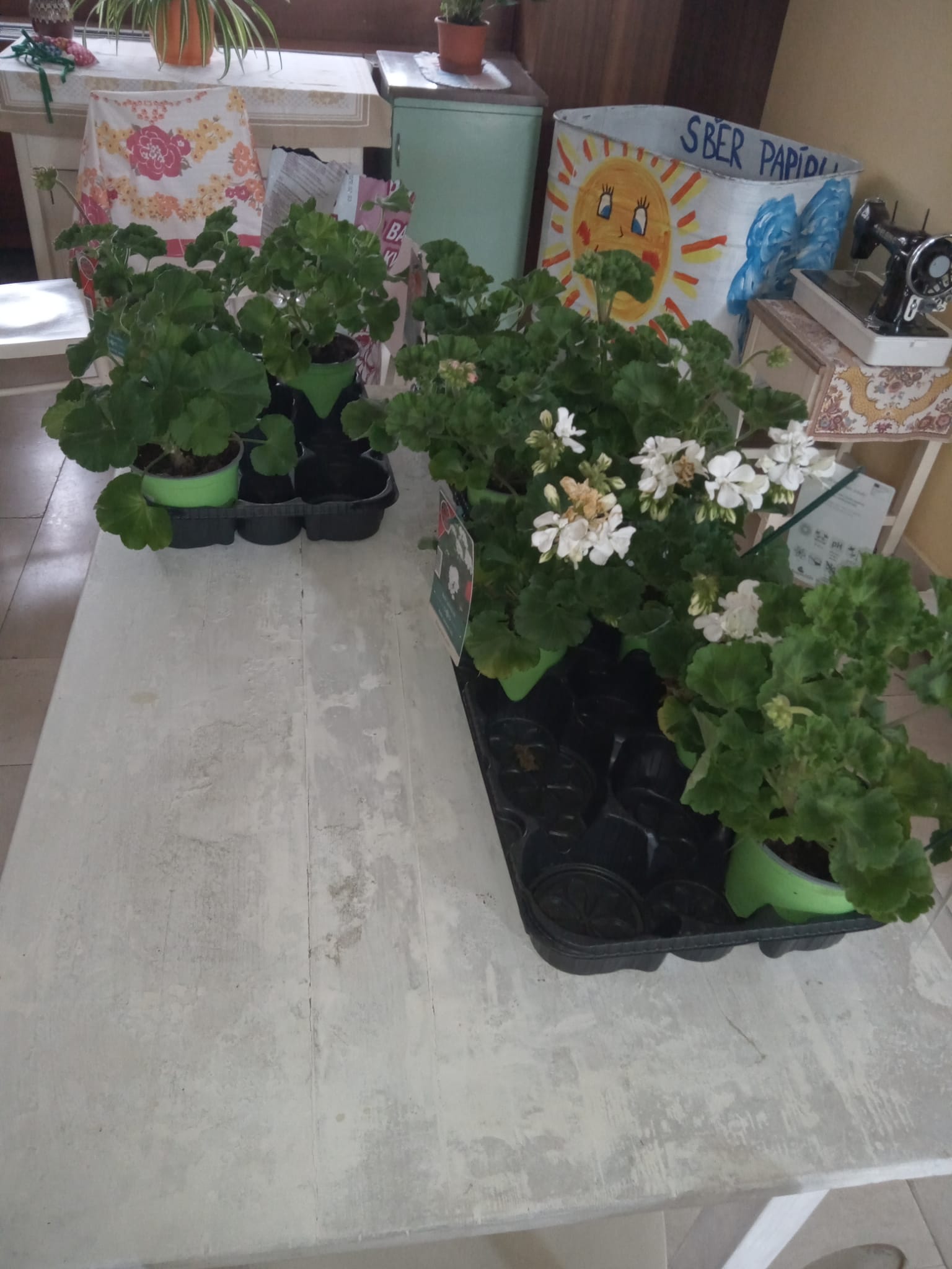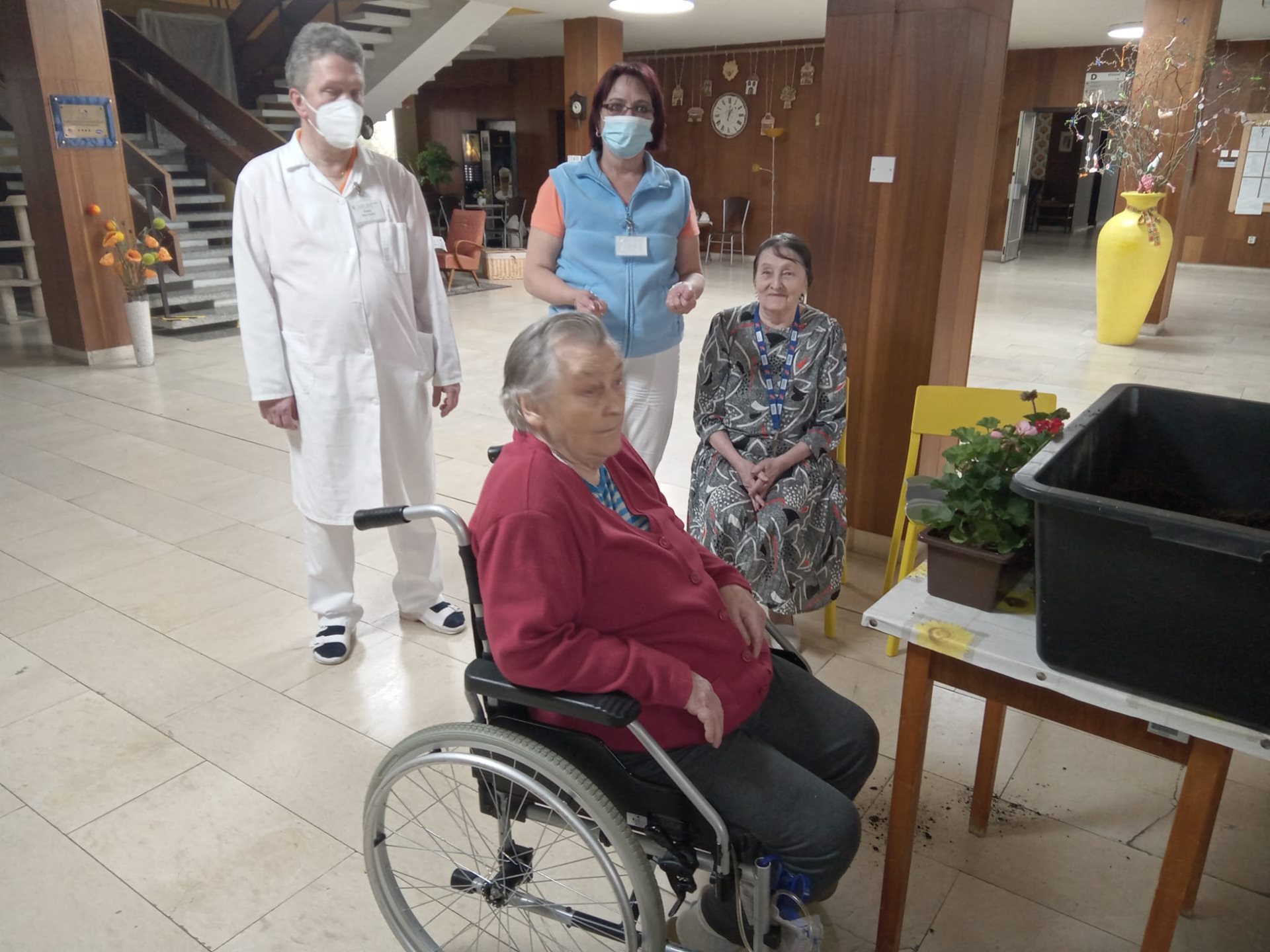 V úterý 26.4.2022 proběhl kroužek péče o venkovní rostliny, při kterém klienty sázely muškáty do truhlíků.