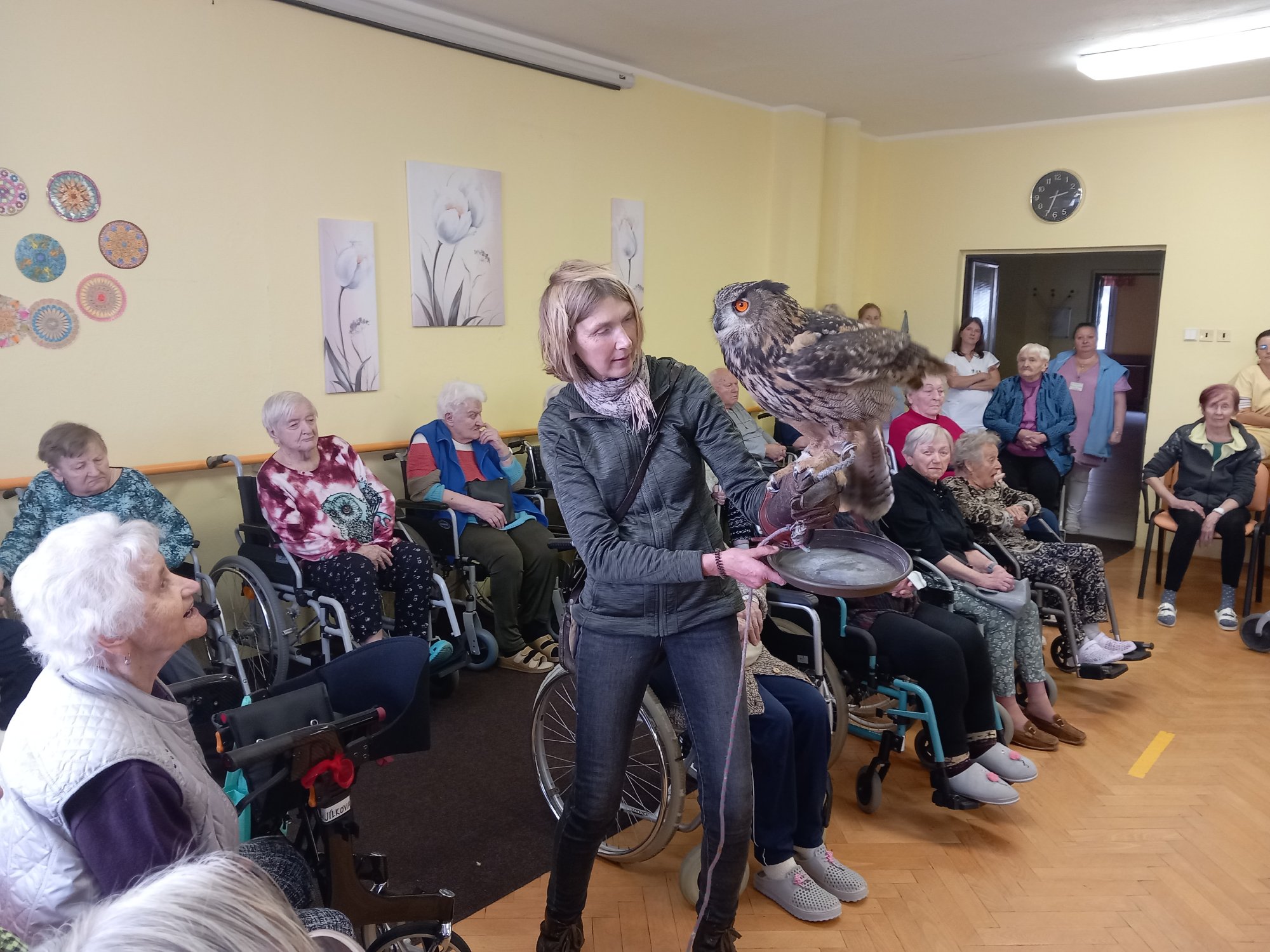 Ve čtvrtek 3.11.2022 nás již poněkolikáté navštívili pracovníci ze záchranné stanice Penthea. Tentokrát si pro naše klienty připravili program Tajemné sovy.