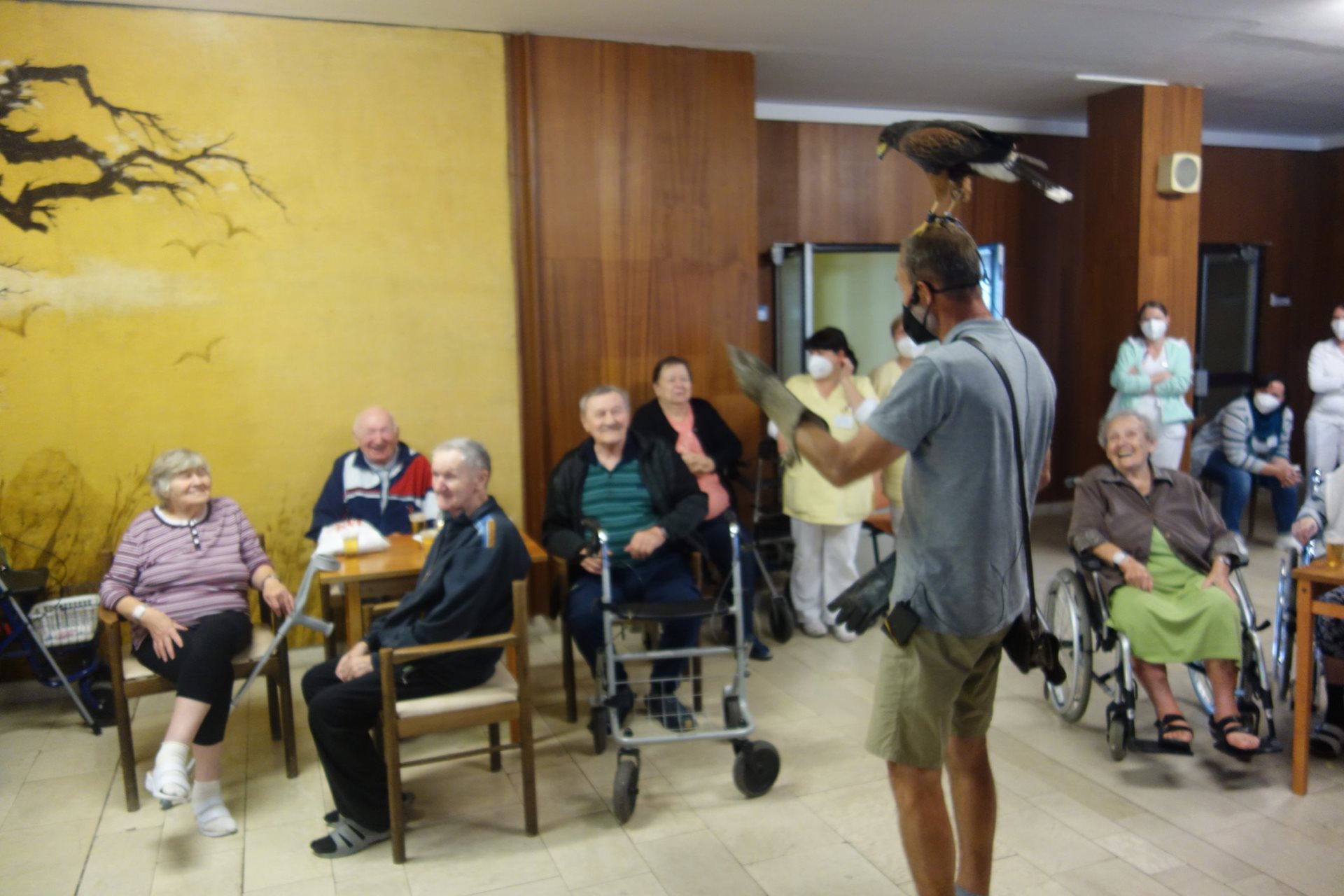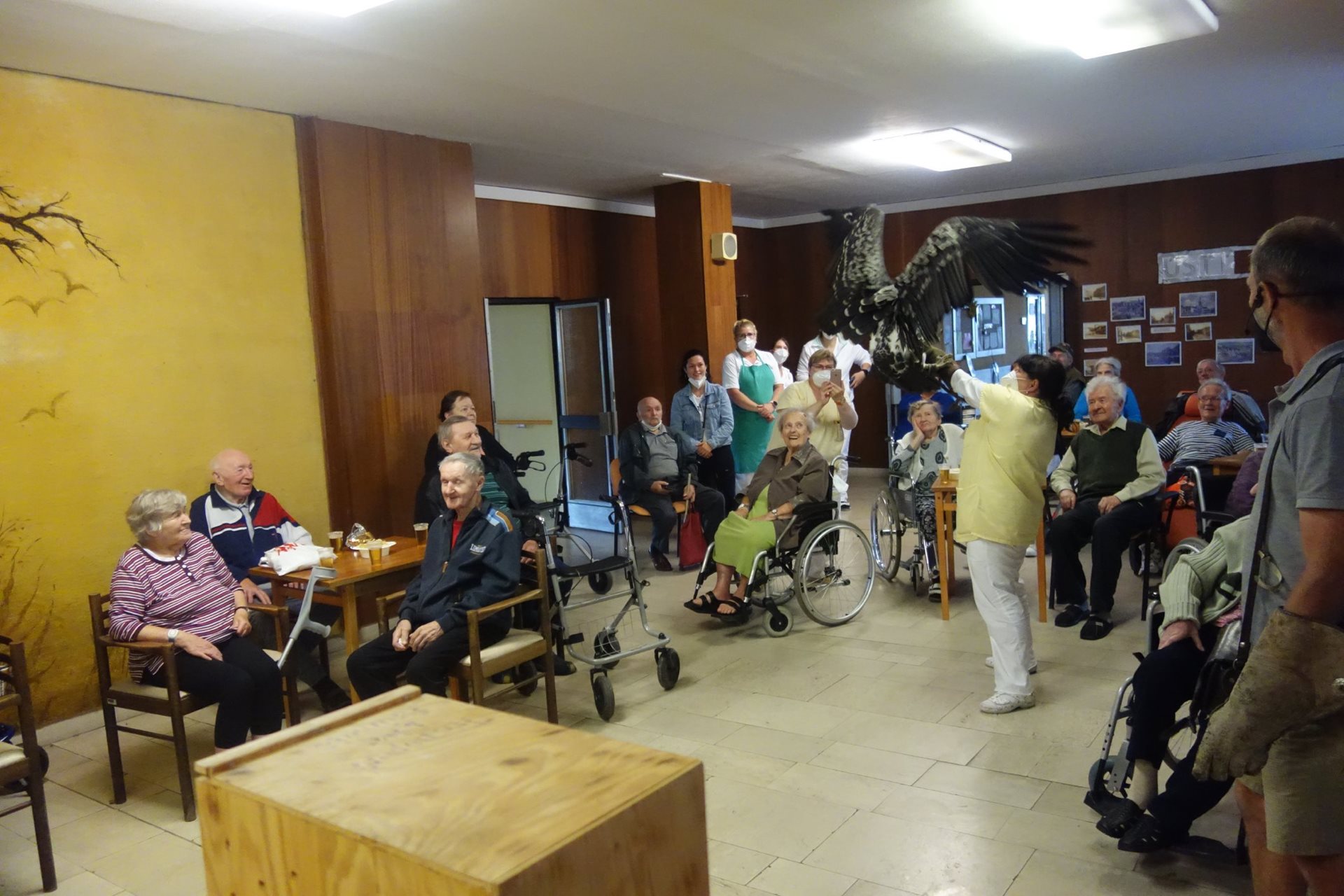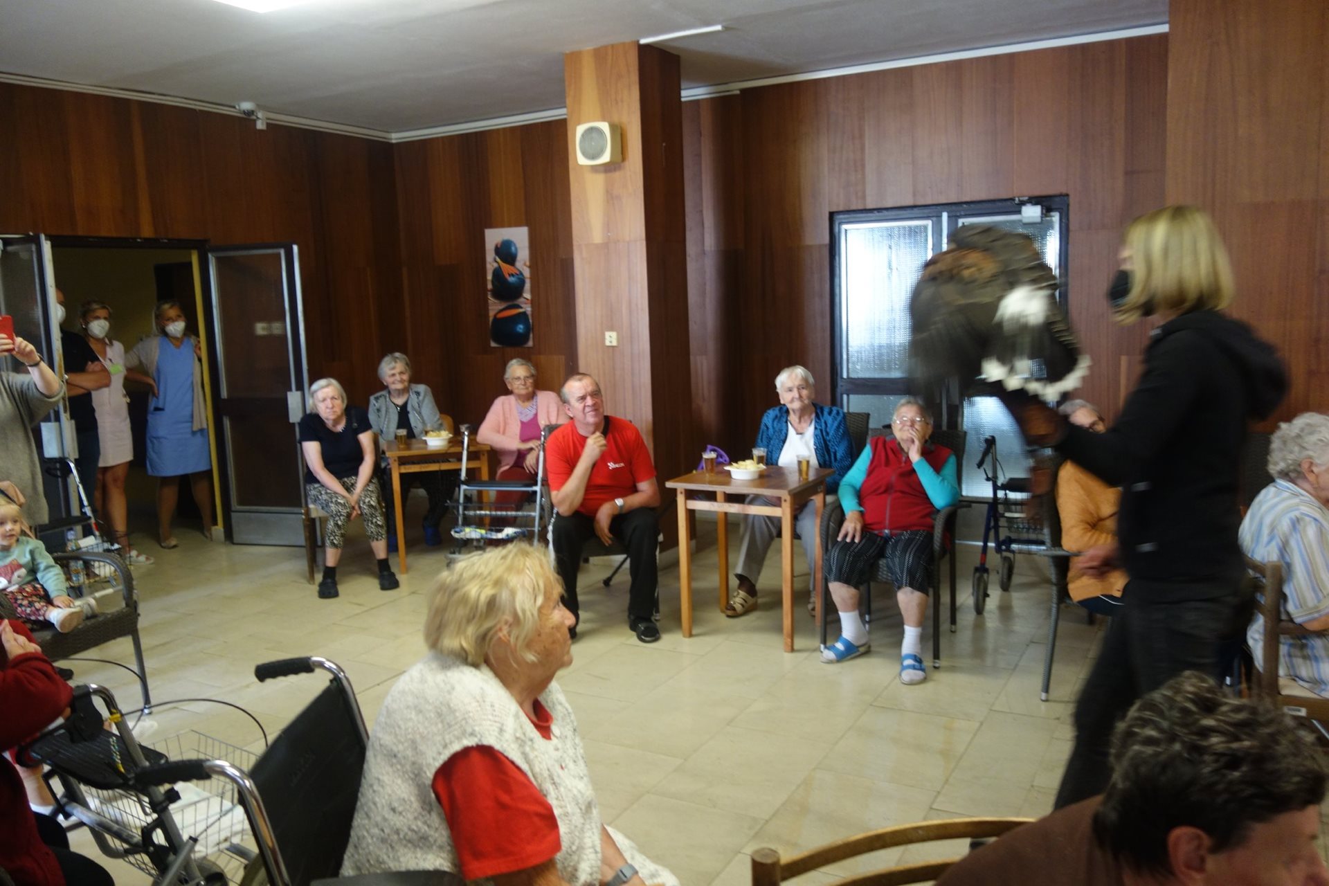 Ve čtvrtek 26.8.2021 v našem domově proběhlo vystoupení dravců, které naši klienti dostali jako dárek v rámci projektu Ježíškova vnoučata.