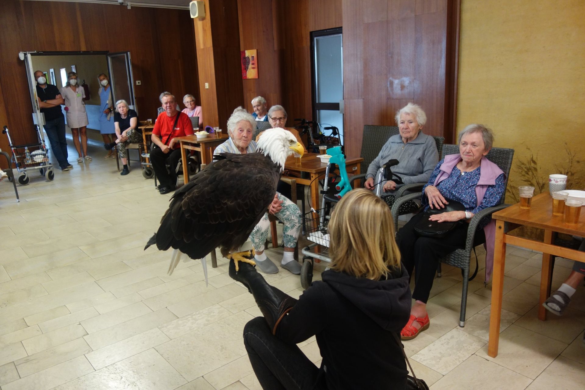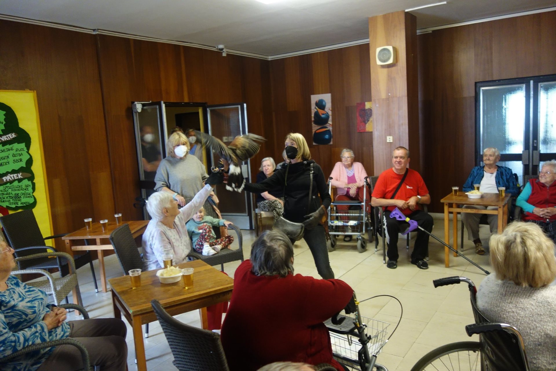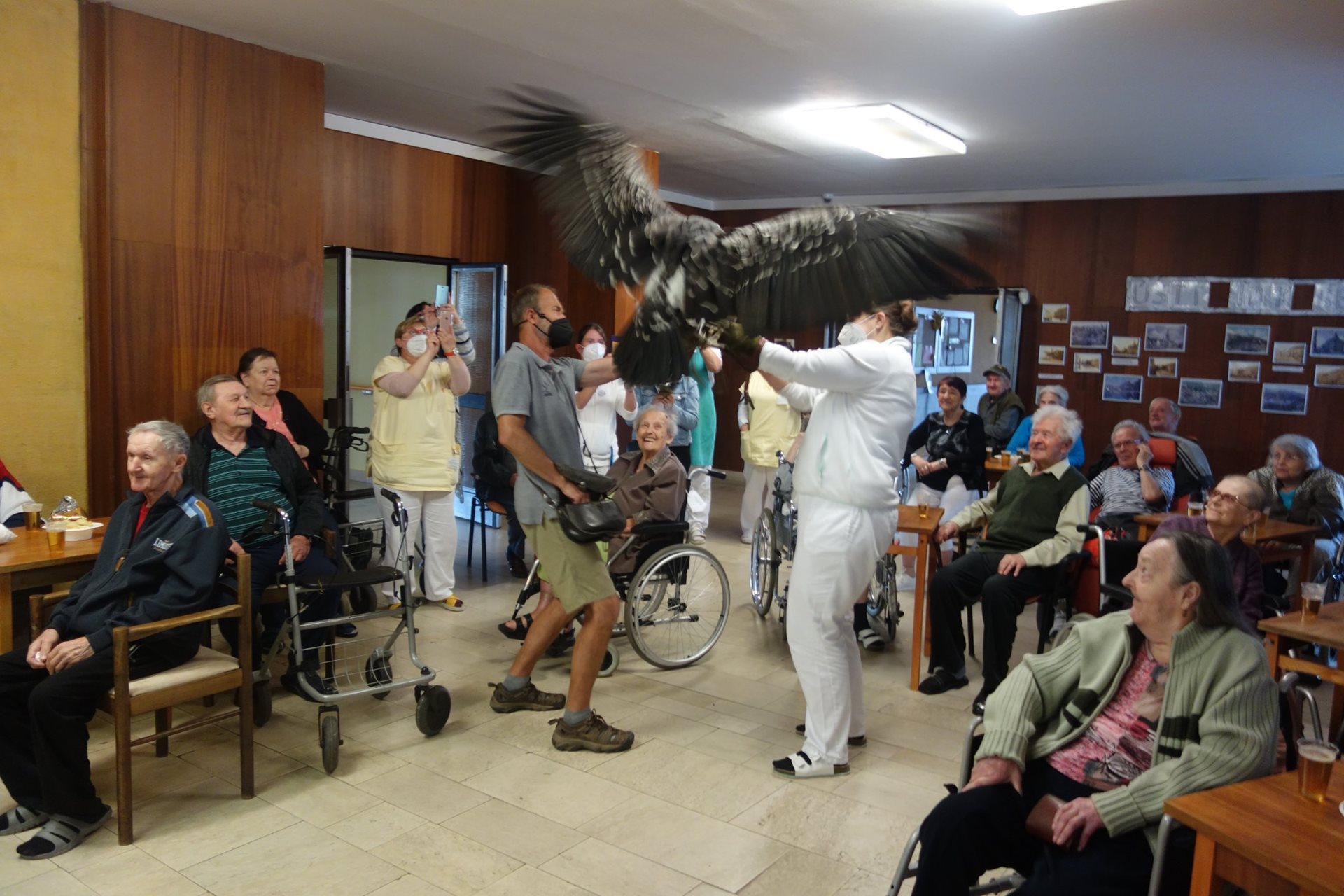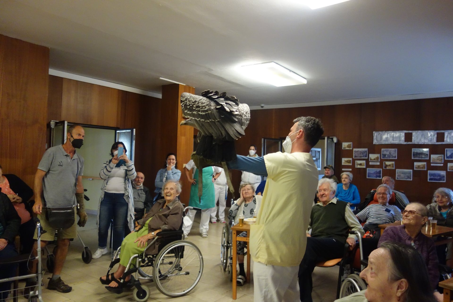 Ve čtvrtek 26.8.2021 v našem domově proběhlo vystoupení dravců, které naši klienti dostali jako dárek v rámci projektu Ježíškova vnoučata.
